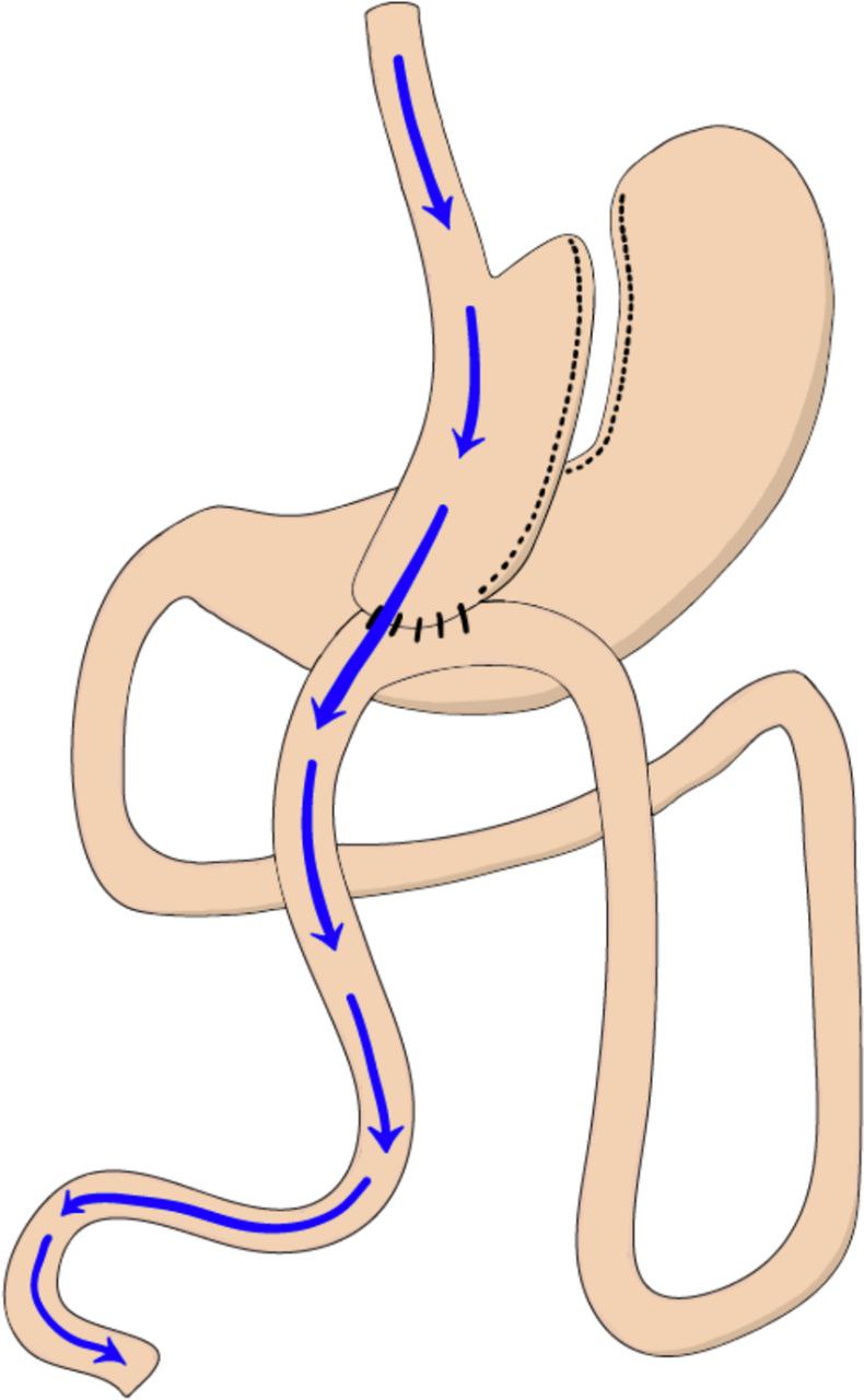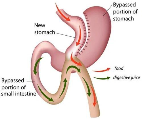 بطور کل در جراحی‌های بایپس معده -به هر شکل باشد- ابتدا حجم معده کم شده و یک معده کوچک ساخته می‌شود و سپس بخشی از روده باریک به این معده کوچک پیوند زده می‌شود و عملا غذا از بخشی از روده باریک عبور نمی‌کند و به این ترتیب جذب قند و چربی و کالری کاهش می‌یابد.